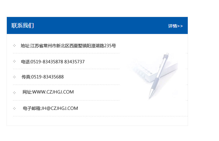 傳真:0519-83435688    郵編:213135    網址:WWW.czjhgj_com.jxebhw.com    電子郵箱:JH@czjhgj_com.jxebhw.com